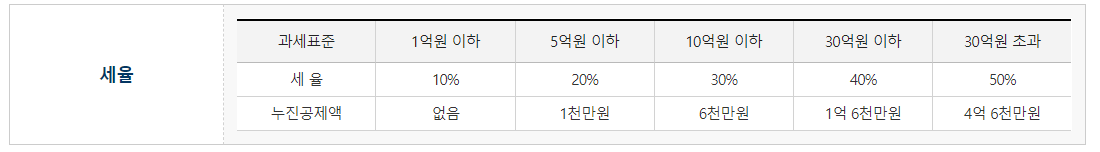 기존 과세표준액에 따른 증여세 세율